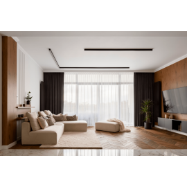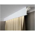 Våre korniser er mer enn bare en praktisk løsning for å skjule gardinskinner, gardinstenger eller rullegardiner. De skaper til og med en følelse av eksklusiv innredning. Et enkelt triks for å gi innredningen et løft er å henge gardinene dine fra taket og plassere dem bak en av våre korniser. Det skaper ikke bare et stemningsfullt inntrykk av høyere takhøyde, men det gir også en illusjon av større plass i rommet.