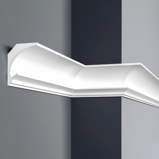 Taklist indirekte lys KD201 er effektfull, dekorativ og forsterker romfølelsen. Taklistene har bredt anvendingsområde, men plasseres vanligvis litt under vinkelen mellom taket og veggen.