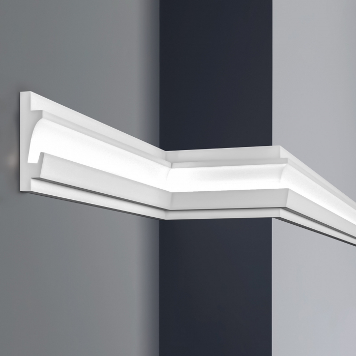Taklist indirekte lys KD401 er effektfull, dekorativ og forsterker romfølelsen. Taklistene har bredt anvendingsområde, men plasseres vanligvis litt under vinkelen mellom taket og veggen.