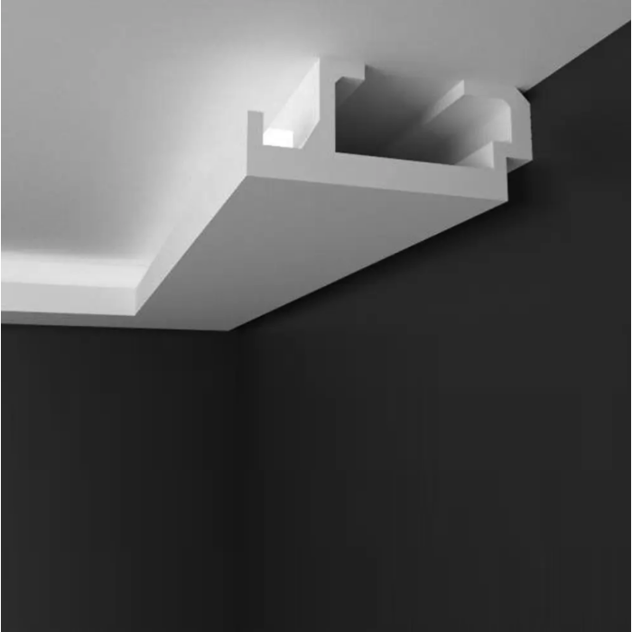 Taklist indirekte lys KD408 er effektfull, dekorativ og forsterker romfølelsen. Taklistene har bredt anvendingsområde, men plasseres vanligvis litt under vinkelen mellom taket og veggen.