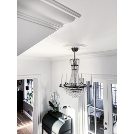 Takrosett K10 er laget i isopor. Monteres med lim. Materialet er lett å arbeide med, og det er enkelt å skjære ut plass til en lampekrok eller hette, samt å gjemme kabler bak. Males med vannbasert farge.