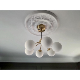 Takrosett K19 er laget i isopor. Monteres med lim. Materialet er lett å arbeide med, og det er enkelt å skjære ut plass til en lampekrok eller hette, samt å gjemme kabler bak. Males med vannbasert farge.