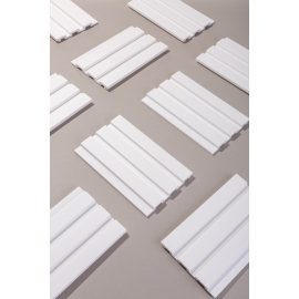 Oppdag vårt eksklusive veggpanel L0201T. Det er et fantastisk dekorativt 3D-panel med et bredt mønster i en elegant og snøhvit nyanse. Det er laget av det nyeste PolyForce-materialet, noe som gir panelet fantastisk motstand både mot vann og sollys, noe som gjør den til det perfekte valget for krevende miljøer som kjøkken og vaskerom.